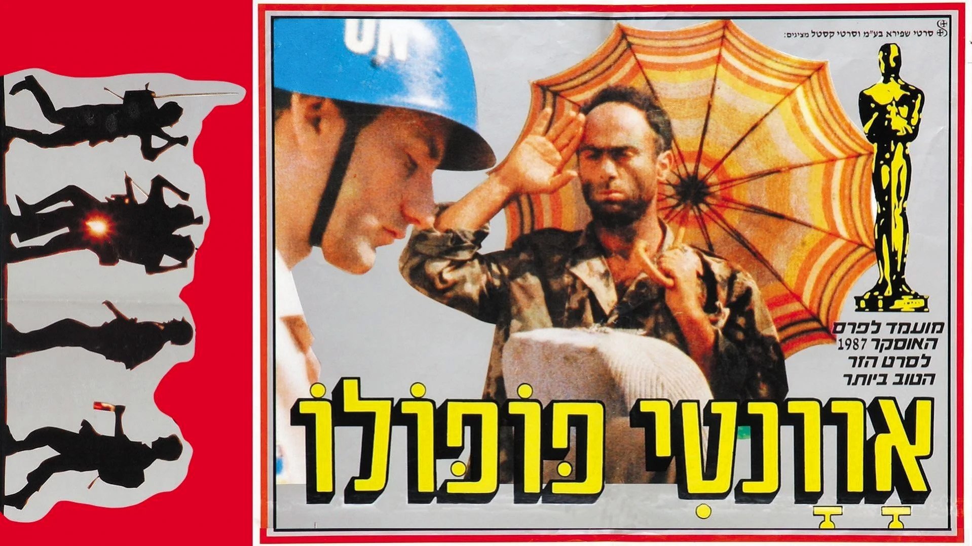 A beautiful anti-war movie. It describes the surreal journey of two Egyptian soldiers as they're coming back to Cairo from the Six-day War of 1967. One is an aspiring actor, whose biggest role so far was that of Shakespeare's Shylock (the irony of fate), who contributes the role of the sad clown (played by the Arab-Israeli actor Salim Daw).